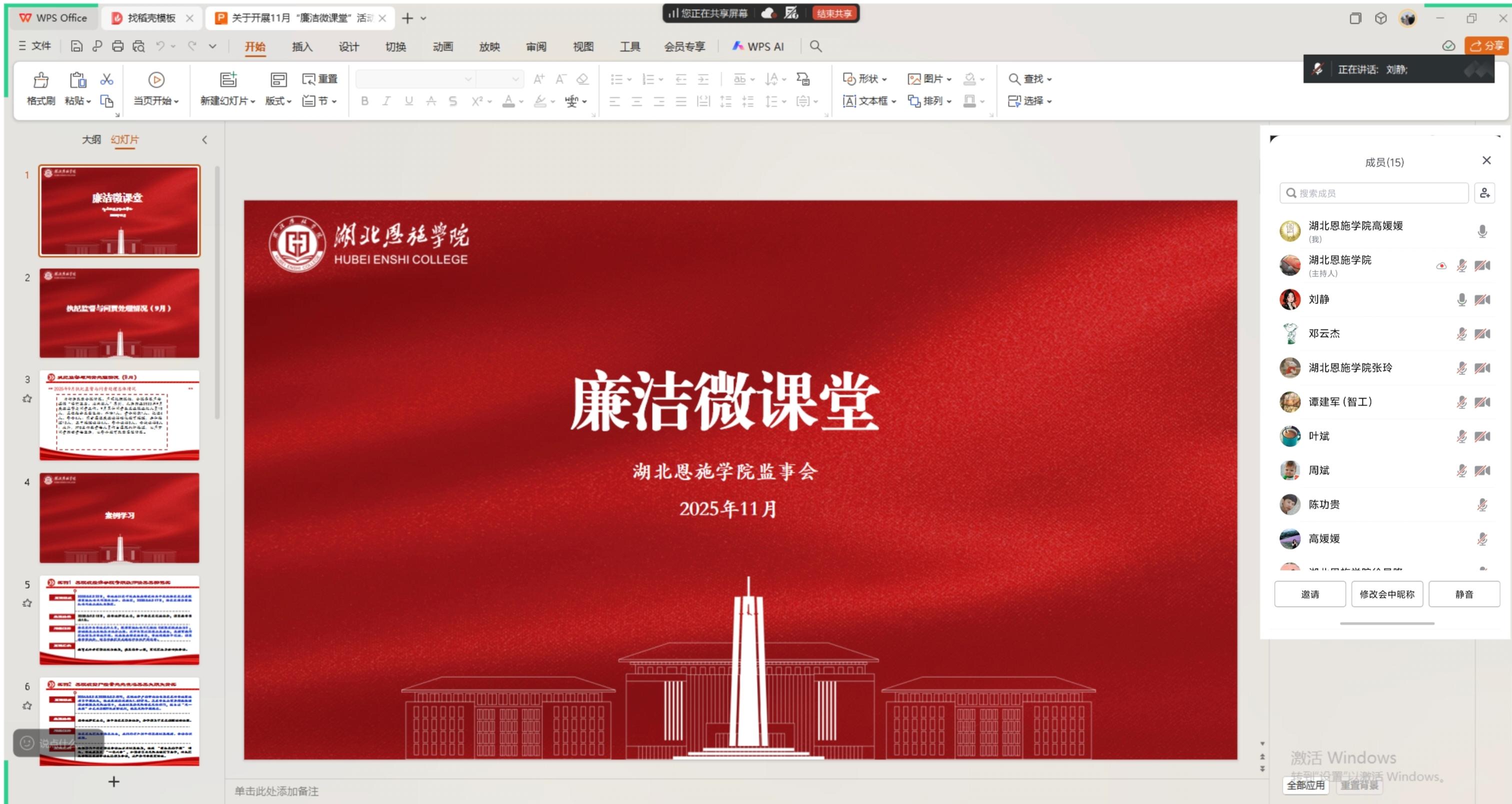 学习中,高媛媛主任围绕湖北恩施学院监事会11月廉洁微课堂核心内容,聚焦2025年9月学校执纪监督与问责处理关键信息展开领读,以严肃问责彰显学校严明纪律、筑牢合规防线的决心。全体参会人员共同学习了9个典型案例,每一个案例均从“案例回放”“处理结果”“问题剖析”“案例启示”四个维度深入剖析,让参会人员深刻认识到违规违纪行为的危害与后果。