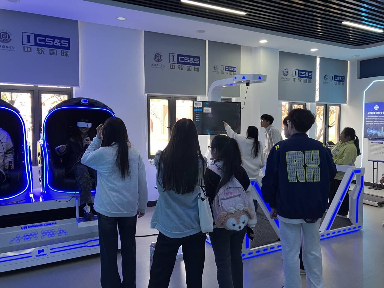 活动现场,在专业老师的引导与细致讲解下,同学们有序参观了展厅,亲身接触了VR设备、下棋机器人等一系列前沿科技产品。老师不仅介绍了这些智能设备的功能与实际应用场景,还分享了科技在教育中的融合与创新。同学们认真聆听,不时发出阵阵赞叹,展现出浓厚的兴趣。