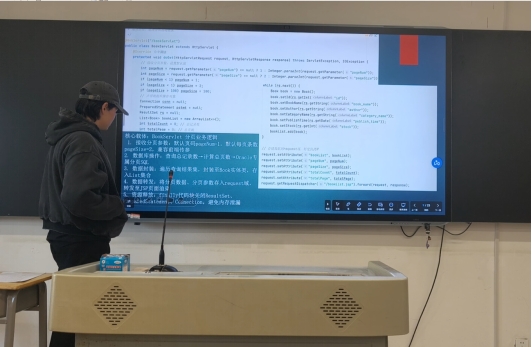 为深化SC教改理念,以学生为中心推动实践教学提质增效,2025年12月30日,JavaWeb集中实训结课答辩竞赛在105教室圆满举行。25级计算机科学与技术2班、3班全体同学同台竞技,任课老师杨学超,评委老师刘东奎、王家林受邀担任本次比赛评委,共同见证同学们的实训成果与成长蜕变。
